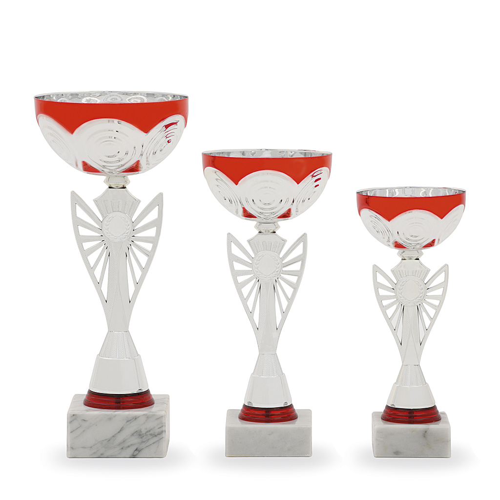 3 různé velikosti    barva: stříbná a červená    podstavec: bílý    prostor pro emblém    možnost umístění poklice