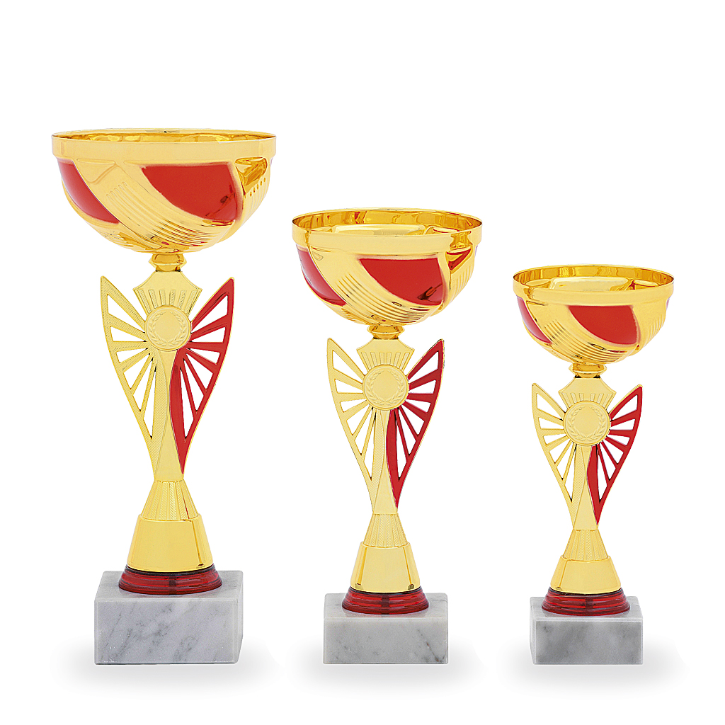 3 různé velikosti    barva: zlatá a červená    podstavec: bílý    prostor pro emblém    možnost umístění poklice