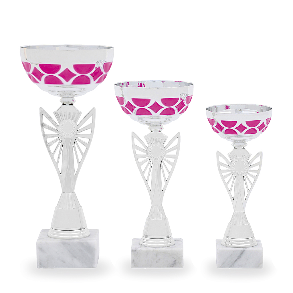 3 různé velikosti    barva: stříbrná a růžová    podstavec: bílý    prostor pro emblém    možnost umístění poklice