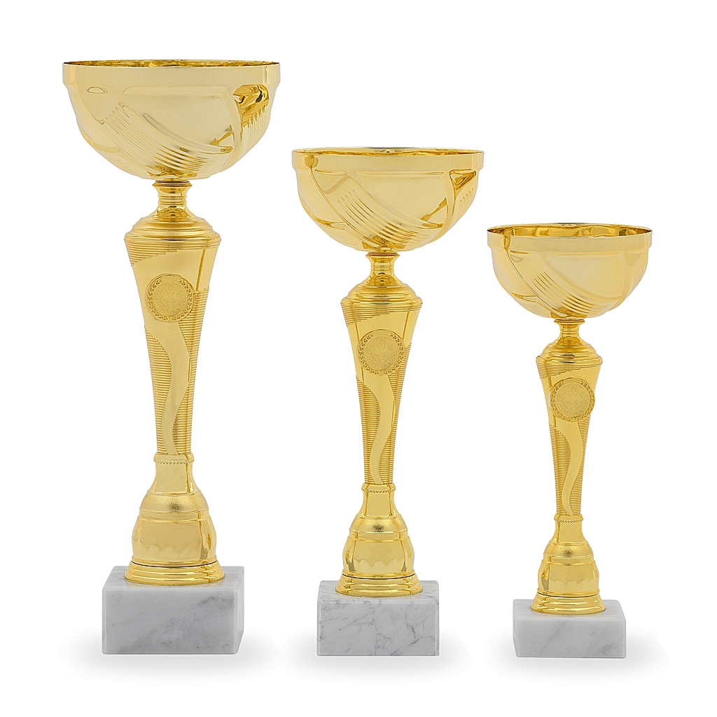 3 různé velikosti    barva: zlatá    podstavec: bílý    prostor pro emblém    možnost umístění poklice