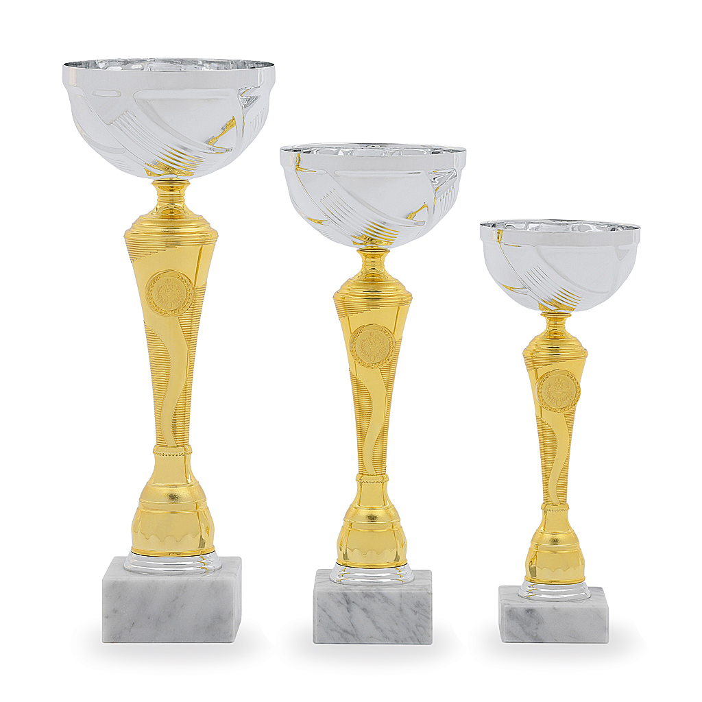 3 různé velikosti    barva: zlatá a stříbrná    podstavec: bílý    prostor pro emblém    možnost umístění poklice