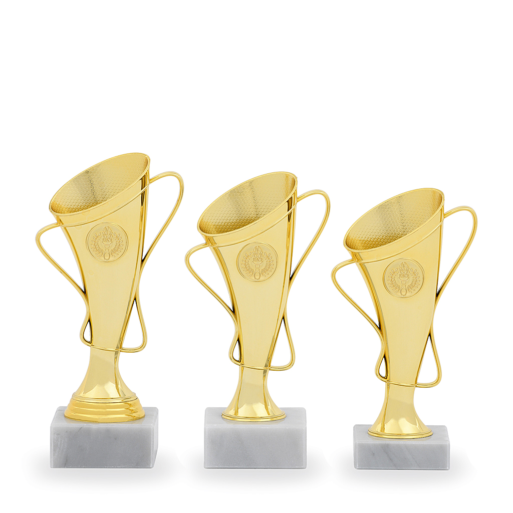 3 různé velikosti    barva: zlatá    podstavec: bílý    prostor pro emblém