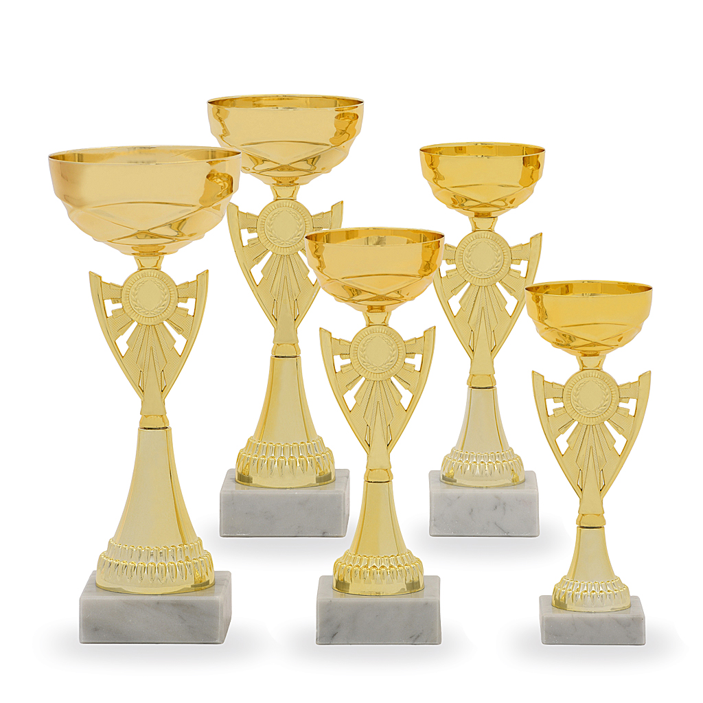 5 různých velikostí    barva: zlatá    podstavec: bílý    prostor pro emblém    možnost umístění poklice