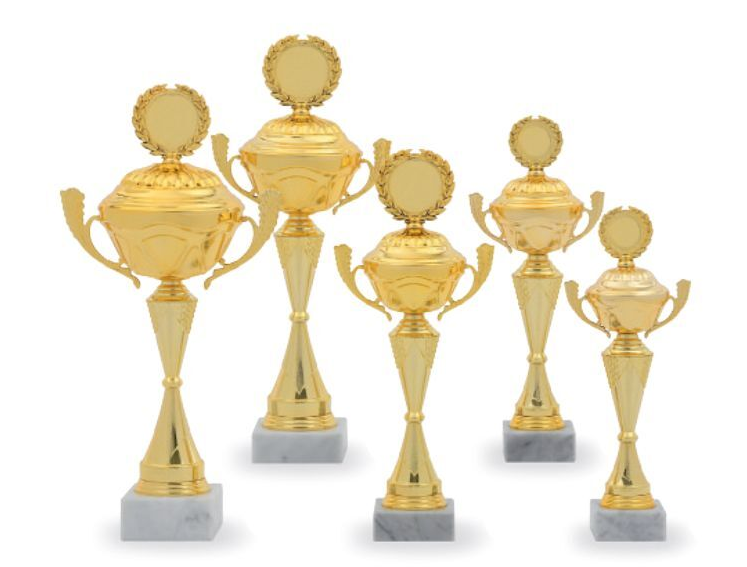 3 různé velikosti    barva: zlatá    podstavec: černý   cena včetně poklice a držáku emblému   možnost vložení emblému