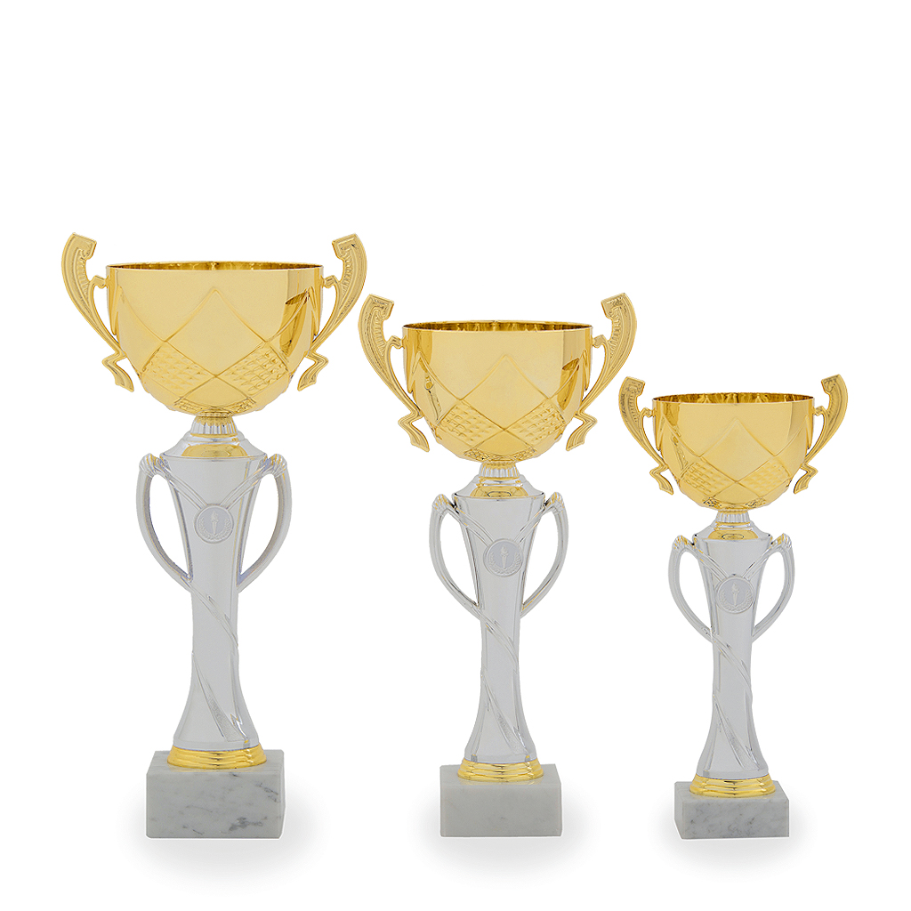 3 různé velikosti   barva: stíbrná se zlatou   prostor pro emblém   podstavec: bílý