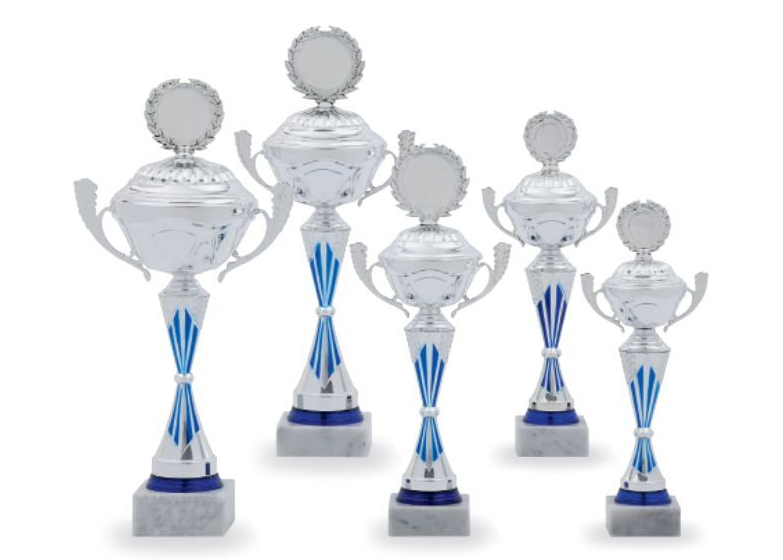 5 různých velikostí    barva: stříbrná a modrá    podstavec: bílý    cena včetně poklice a držáku emblému   možnost vložení emblému