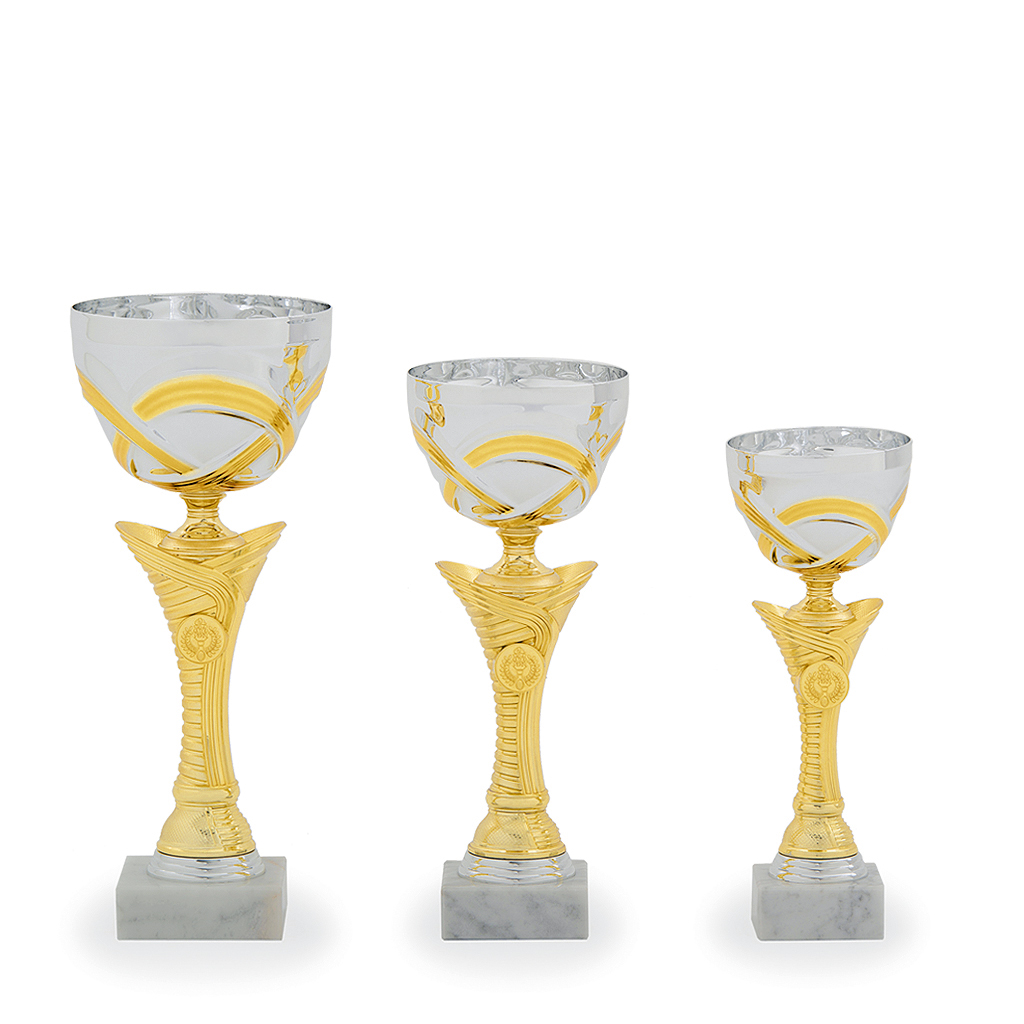 3 různé velikosti   barva: zlatá se stříbrnou   prostor pro emblém   podstavec: bílý