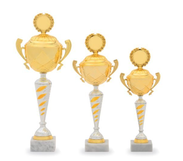 3 různé velikosti    barva: zlatá a stříbrná    podstavec: bílý    Cena včetně poklice a držáku na emblém    možnost vložení emblému