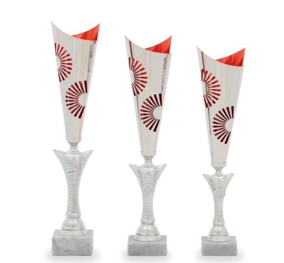 3 různé velikosti    barva: stříbrná a červená    podstavec: bílý    prostor pro emblém