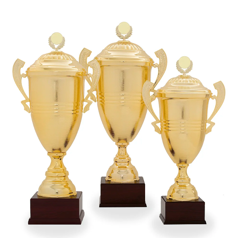 3 různé velikosti    Barva: zlatá    Podstavec dřevěný    Celokovové provedení