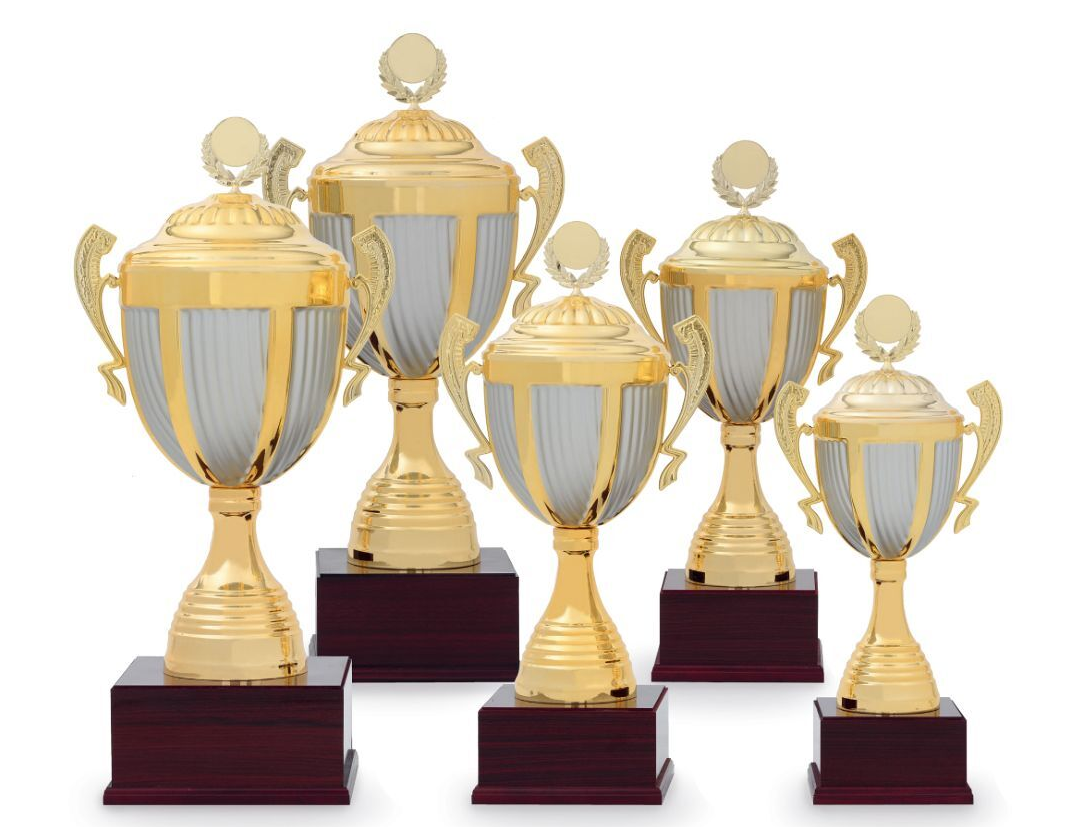 5 různých velikostí    barva: zlatá a stříbrná    podstavec: hnědý    prostor pro emblém