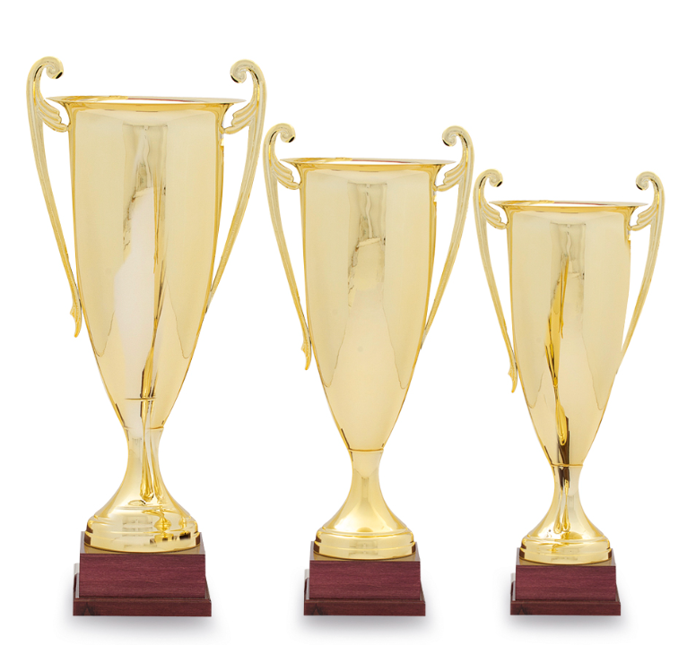 3 různé velikosti    Barva: zlatá    Dřevěný podstavec    Celokovové provedení