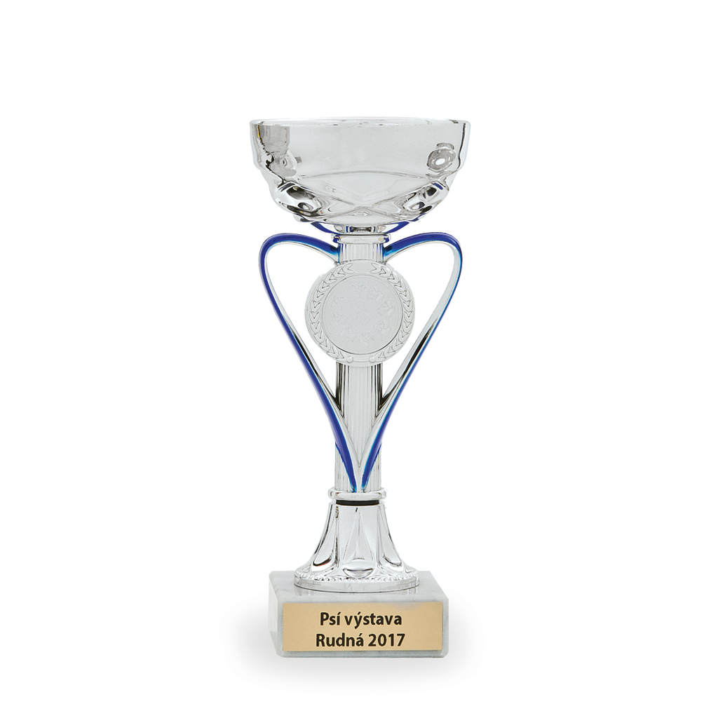 výška: 17 cm   barva: stříbrná s modrou   prostor pro emblém   podstavec: bílý