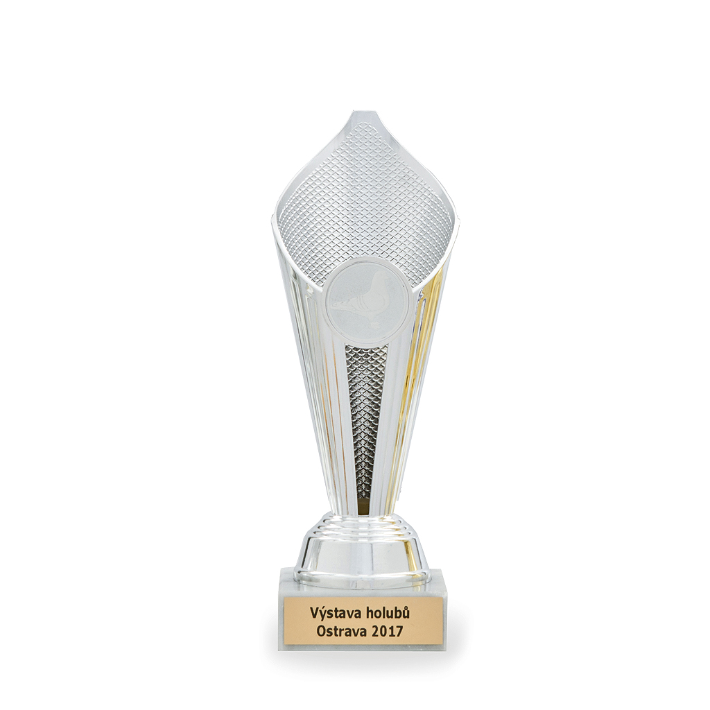 výška: 17 cm   barva: stříbrná   prostor pro emblém   podstavec: bílý
