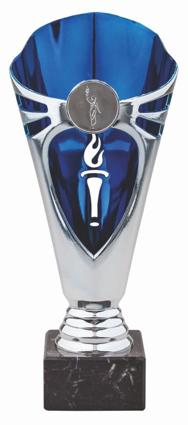 Na sportovní pohár lze umístit emblém. V ceně poháru není zahrnuta cena štítku. Barva: stříbrná/modrá  podstavec: černý