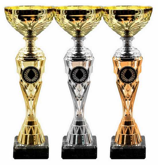 Plastový pohár. V ceně poháru není zahrnuta cena štítku. Barva: zlatá/stříbná/bronzová  podstavec: černý