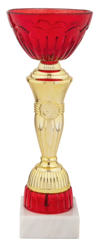 barva: zlatá - červená podstavec: bílý mramor prostor pro emblém 3 velikosti