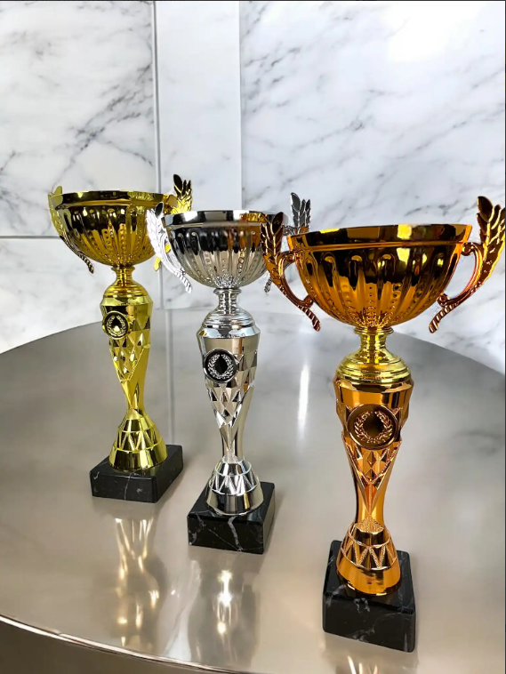 Pohár o třech velikostech. Cena trofeje nezahrnuje štítek a emblém, který si můžete objednat samostatně dle vašich přání.