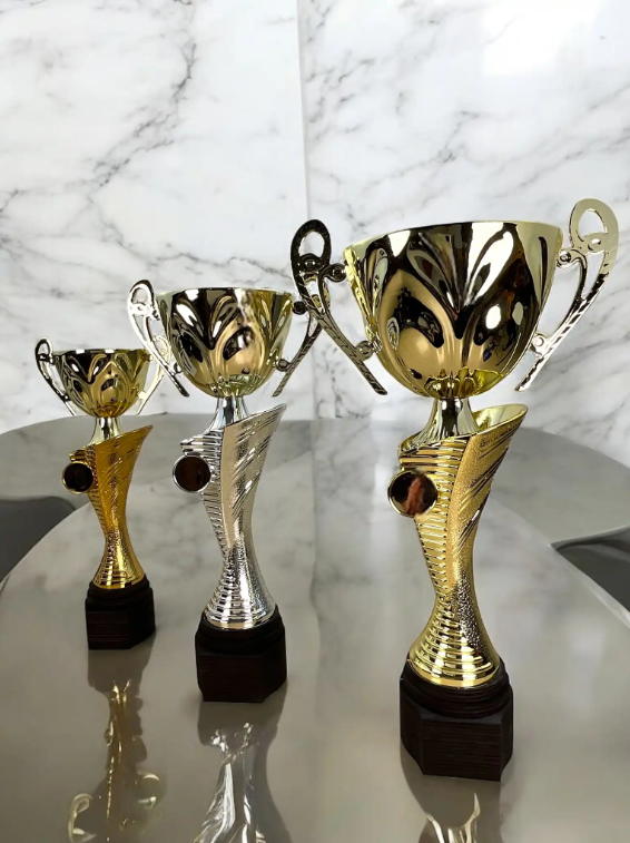 Pohár o třech velikostech. Cena trofeje nezahrnuje štítek a emblém, který si můžete objednat samostatně dle vašich přání.