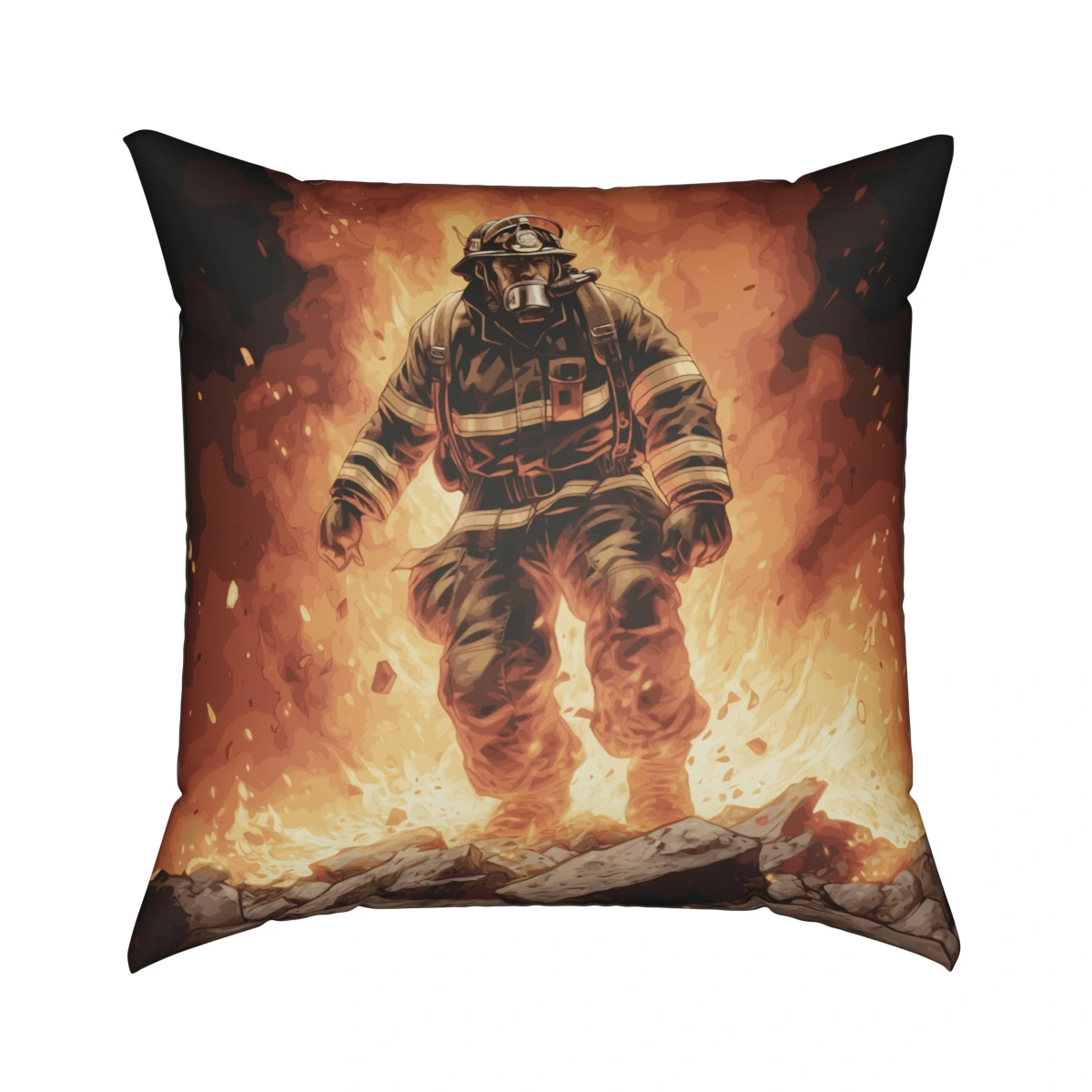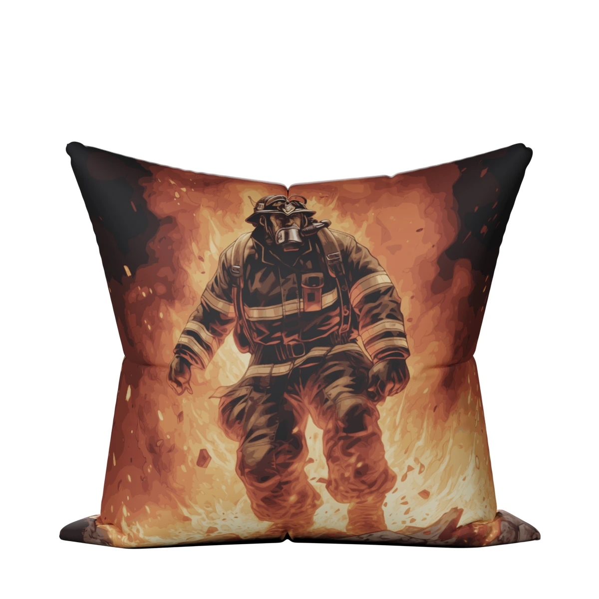 Polštářek s potiskem Hasič v plamenech. Večer si jej můžete vložit pod hlavu a ráno s ním ozdobit například sedačku. Unikátní motiv polštáře s hasičskou tématikou je ideální dárek pro radost i do domácnosti.