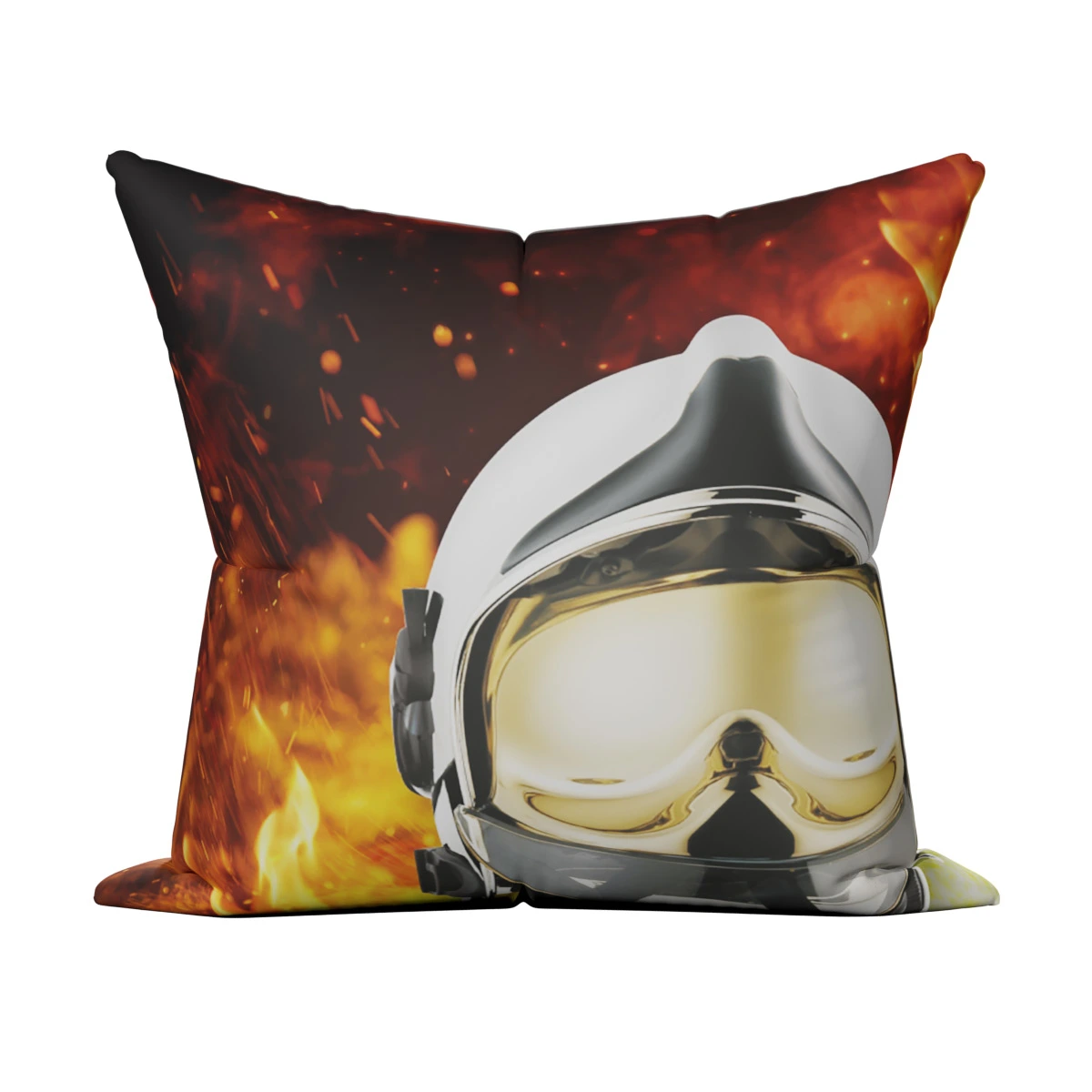 Polštářek s potiskem na motivy zásahové helmy. Večer si jej můžete vložit pod hlavu a ráno s ním ozdobit například sedačku. Unikátní motiv polštáře s hasičskou tématikou je ideální dárek pro radost i do domácnosti.