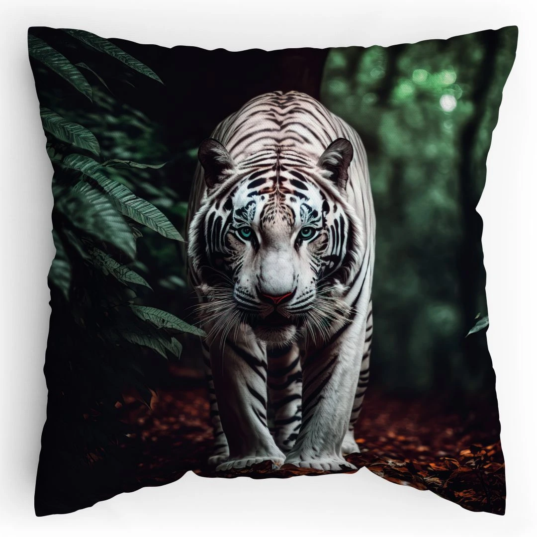 Vneste do svého interiéru nádech exotiky s tímto unikátním dekoračním polštářem. Sublimační potisk bílého tygra uprostřed džungle zaujme na první pohled a přinese do prostoru dynamiku i eleganci.