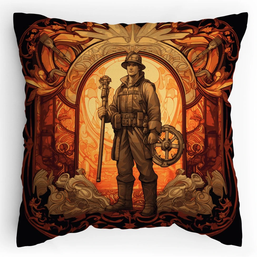 Polštářek s potiskem Hasič ala Alfons Mucha