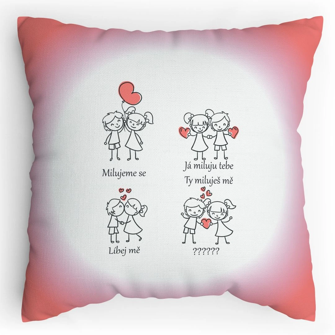 Polštářek s potiskem Já miluju tebe, ty miluješ mě