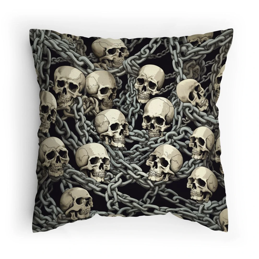 Polštářek s potiskem Lebky a řetězy