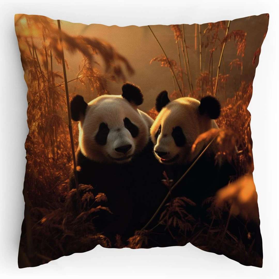 Polštářek s potiskem Pandy  - Snídaně v trávě