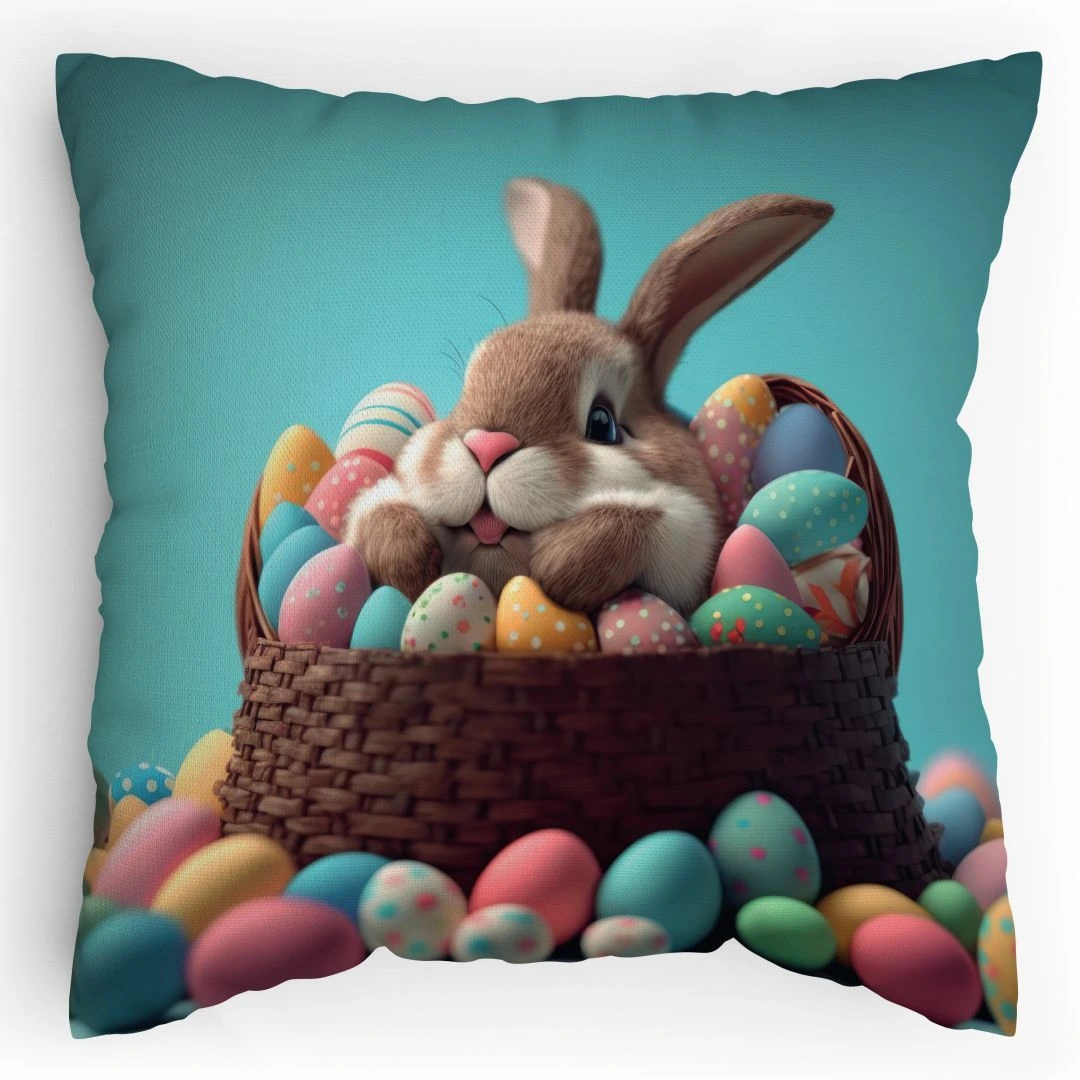Polštářek s potiskem Velikonoční zajíček v košíku
