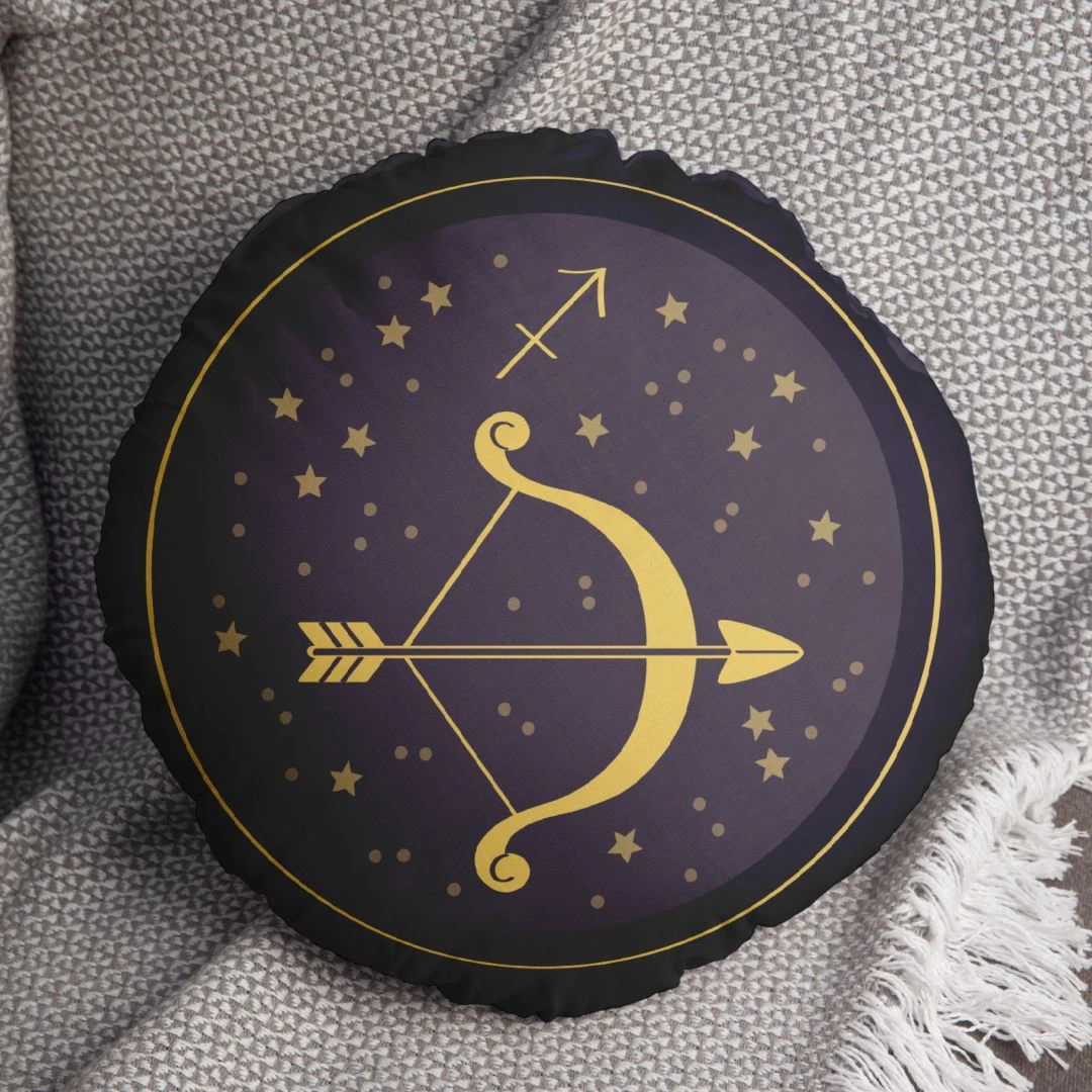 Kulatý polštářek o průměru 40cm dekorovaný neoddělitelnou  sublimační technologií.