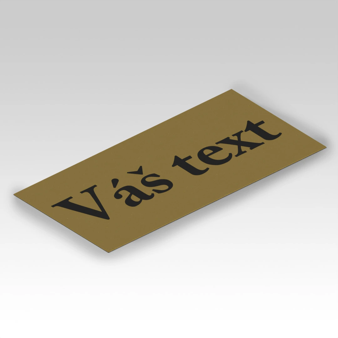 Tištěný štítek zlatý s černým textem je připraven pro váš vlastní text.