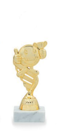 Výška: 15 cm        barva: zlatá        podstavec: bílý