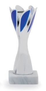 barva: stříbrná a modrá    podstavec: bílý    výška: 17 cm
