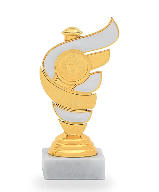 Barva: zlatá a stříbrná    podstavec: bílý    výška: 14 cm    prostor pro emblém