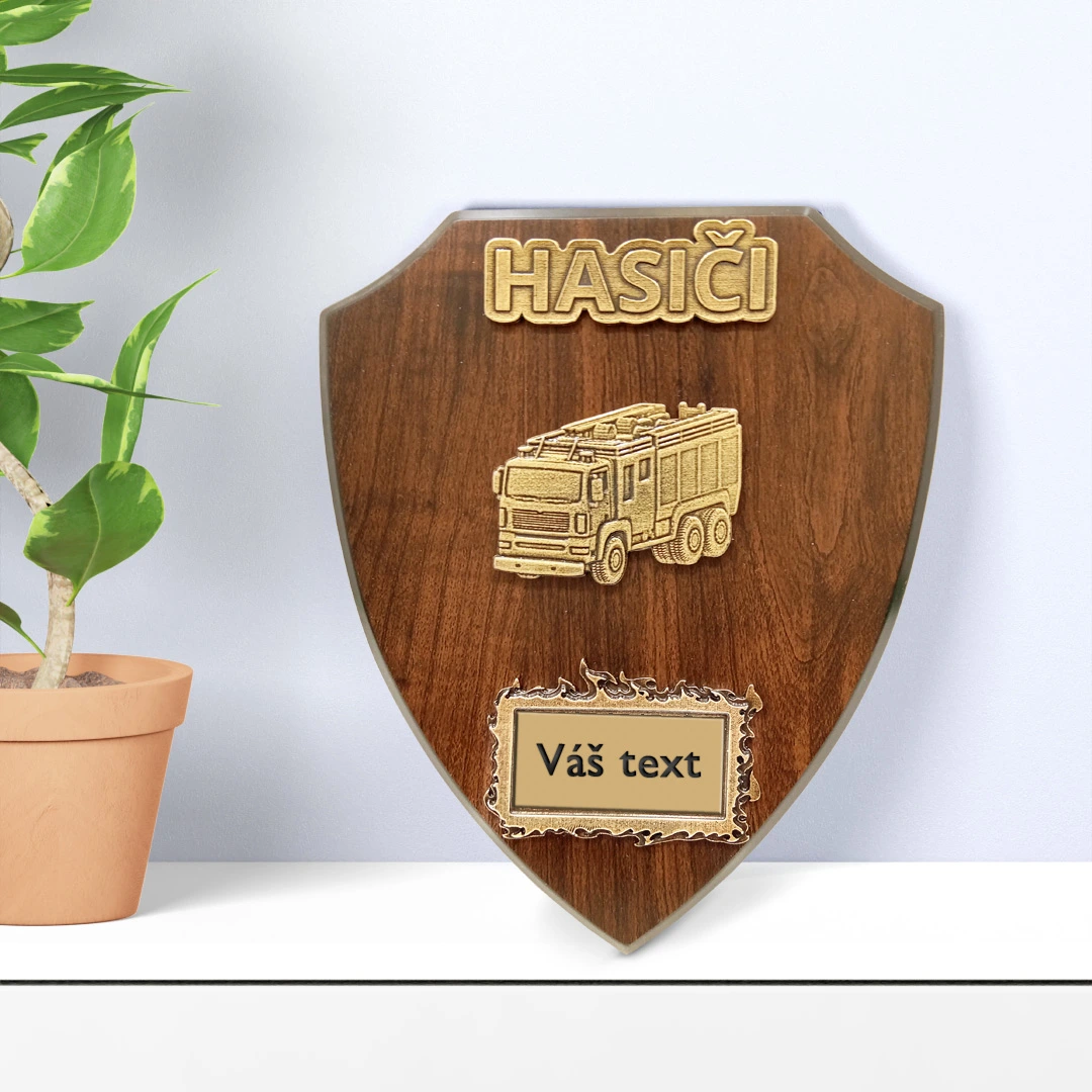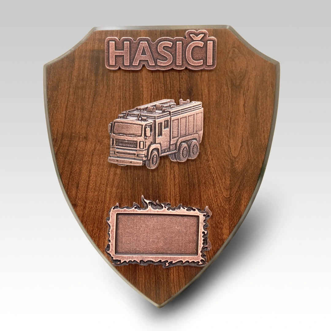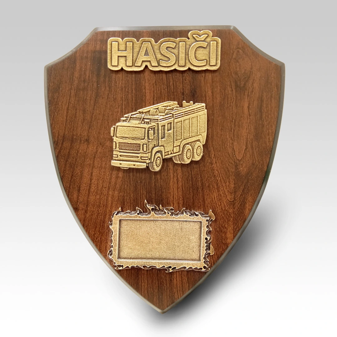 Dárek který udělá radost profesionálnímu i dobrovolnému hasiči. To je dřevěná plaketa tvaru erbu s motivem hasičského auta o velikosti 22,5x18cm z naší výroby. Plaketa je absolutní novinka na našem trhu - za jejím vývojem stojí náš profesionální český tým specialistů na trofeje.
