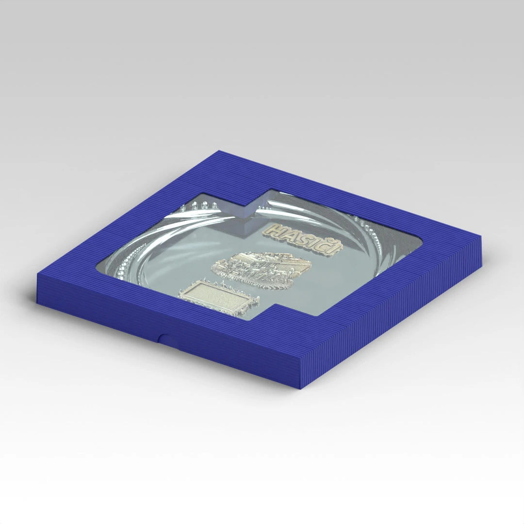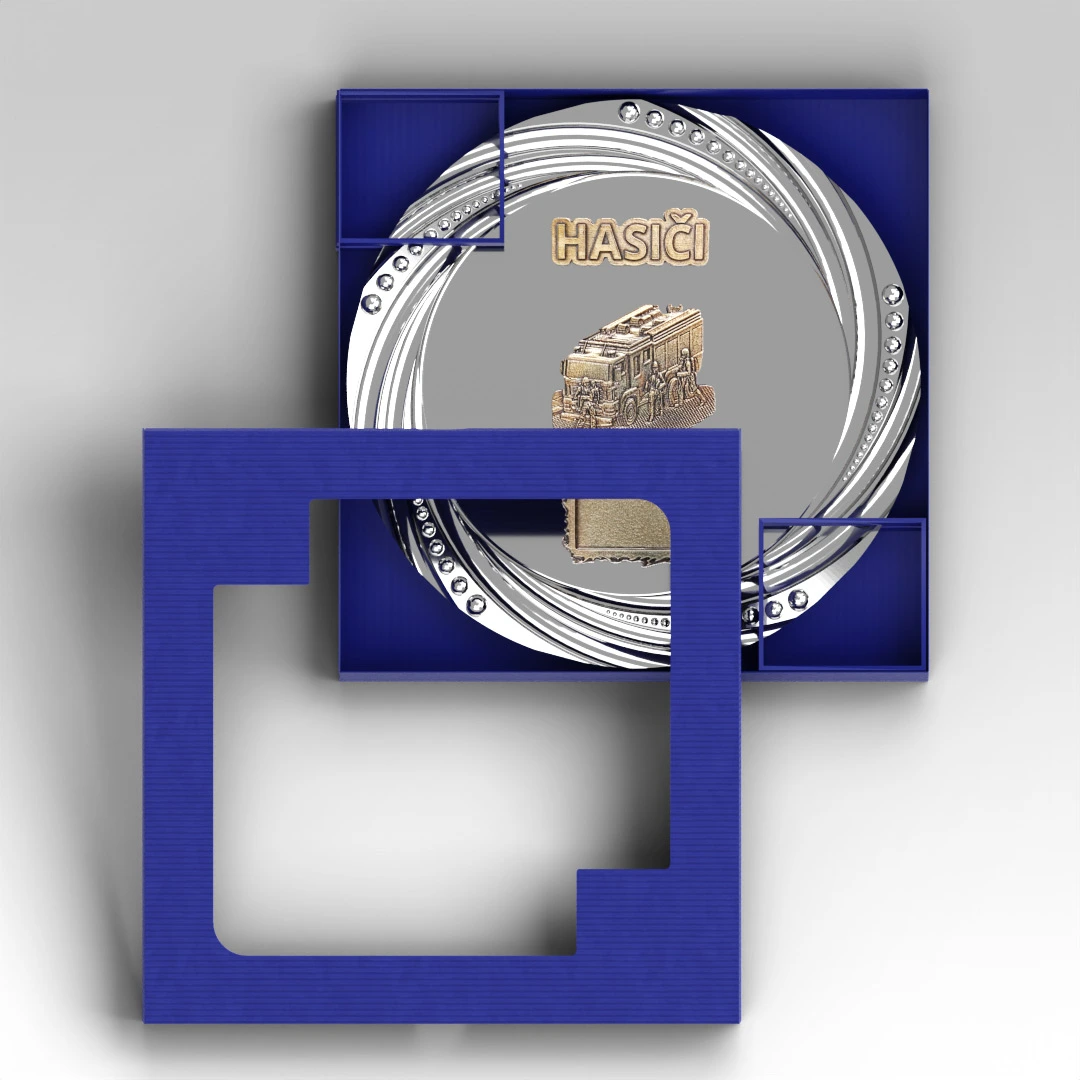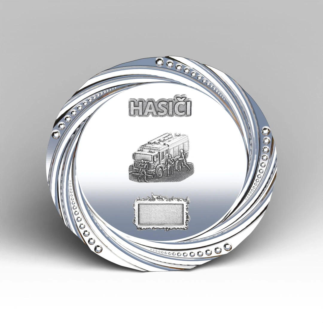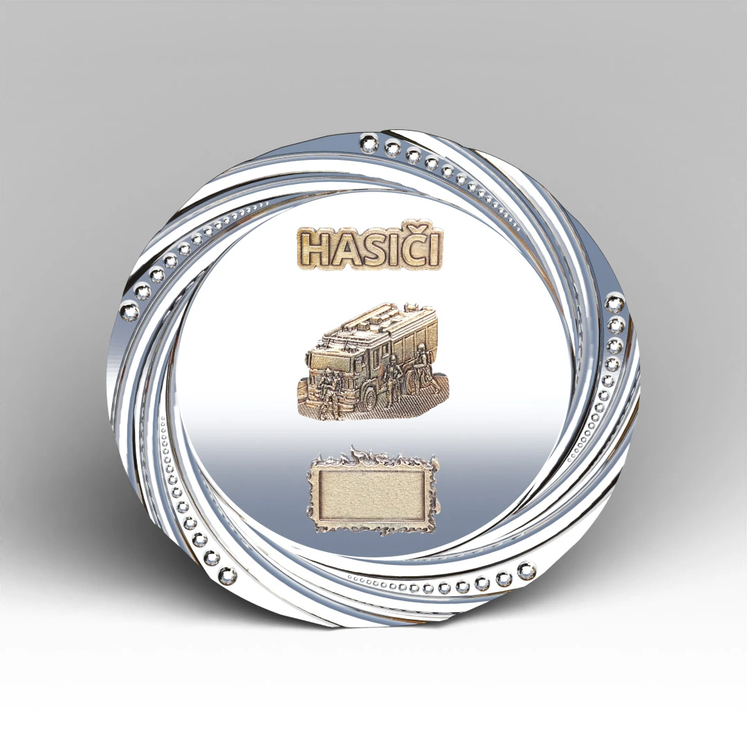 Dárek i ocenění, které připomene významnou událost nebo záchranu života, udělá radost každému. Takový často těžký úkol dokáže splnit tento luxusní dárkový kovový talíř s motivem hasičského vozu a hasičů v akci.