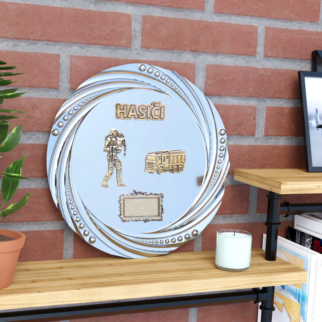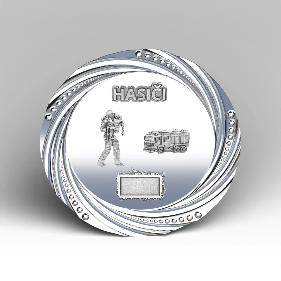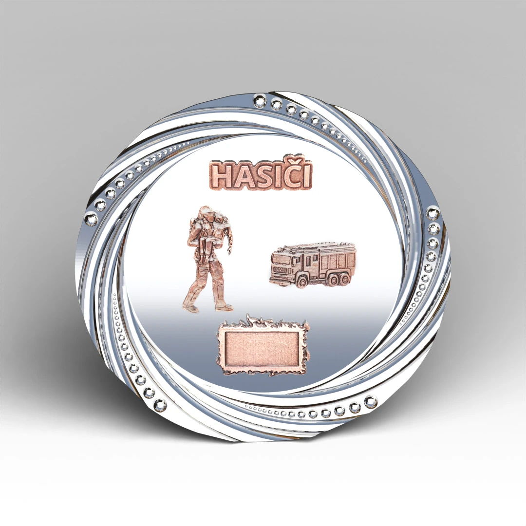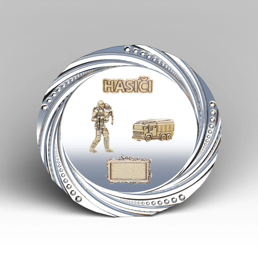 Dárek i ocenění, které připomene významnou událost nebo záchranu života, udělá radost každému. Takový často těžký úkol dokáže splnit tento luxusní dárkový kovový talíř s motivem hasičského vozu a hasičem zachráncem.