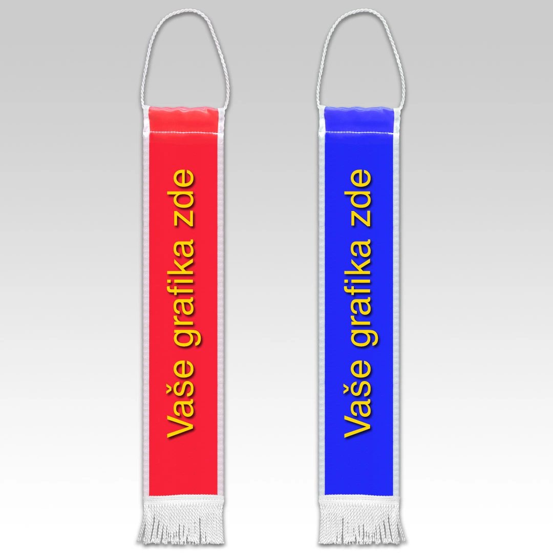 Horní část stuhy na prapor je doplněna o ozdobnou kroucenou šňůrku s karabinkou k přichycení a ve spodní části je zakončená ozdobnými třásněmi.